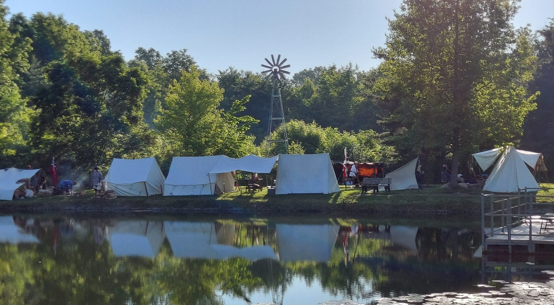 For reenactors, wood, water provided, indoor facilities. Pizza supplied for the camp after set up on Friday night, continental breakfasts provided Saturday & Sunday and ham provided for a camp potluck Saturday night.
