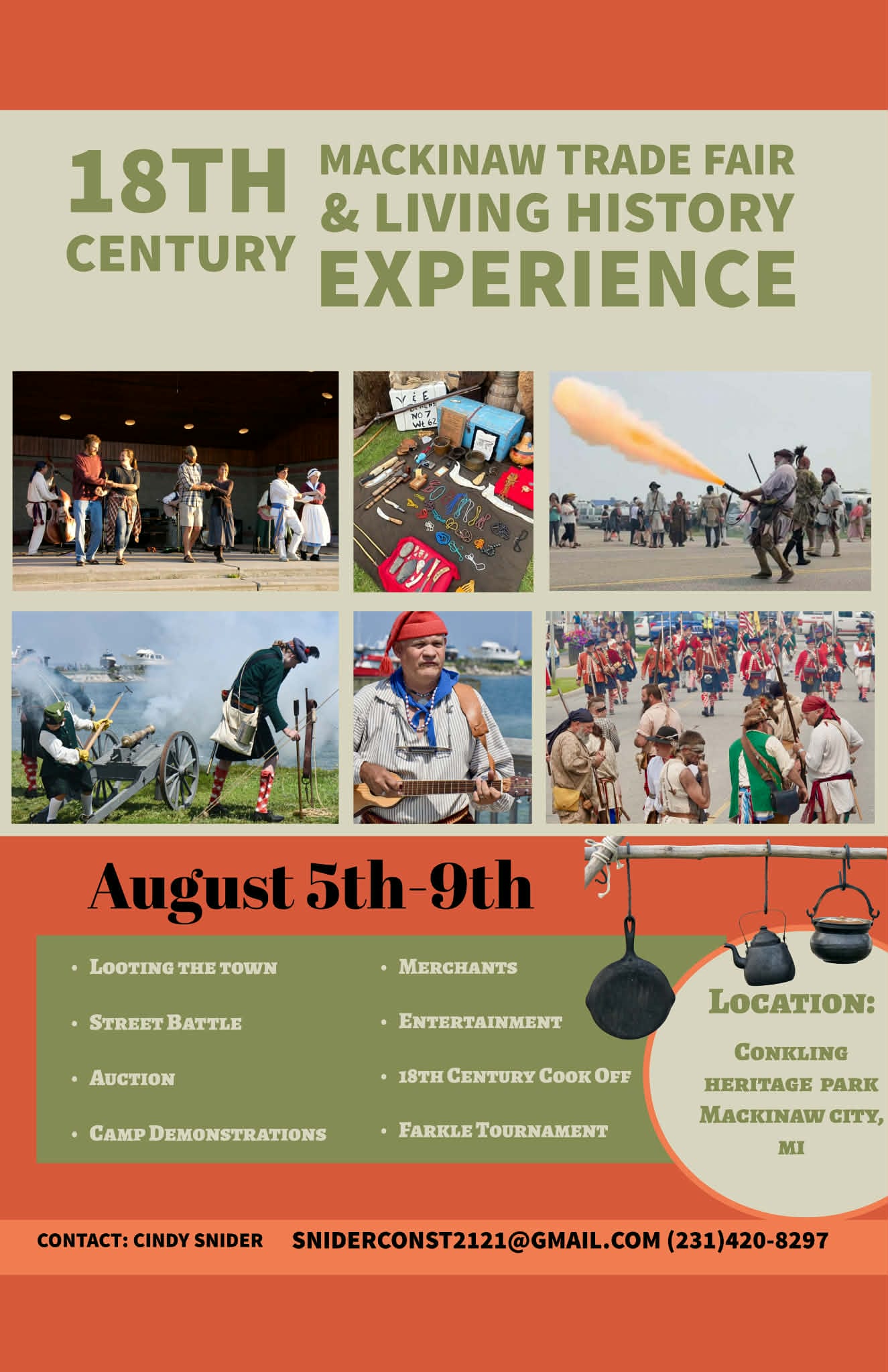 Largest Colonial Event in Michigan (French and Indian War and Revolutionary War). Two tacticals daily, one for each era. Different demonstrations daily including drum and fife corp. Wood, water, porta […]